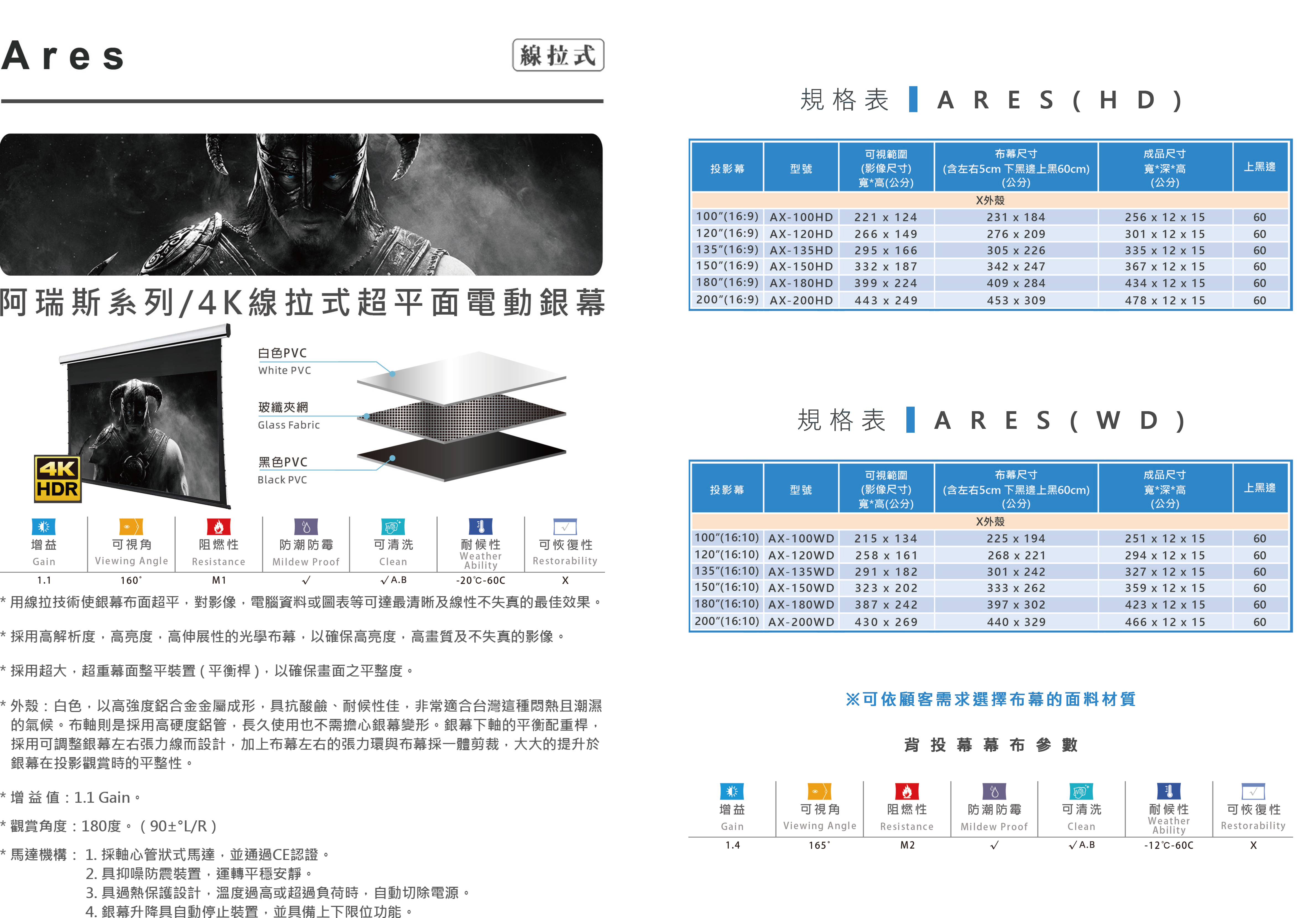 用線拉技術使布面超平,採用高解析度,高亮度,高伸展性的光學布幕,以確保高亮度,高畫質及不失真的影像