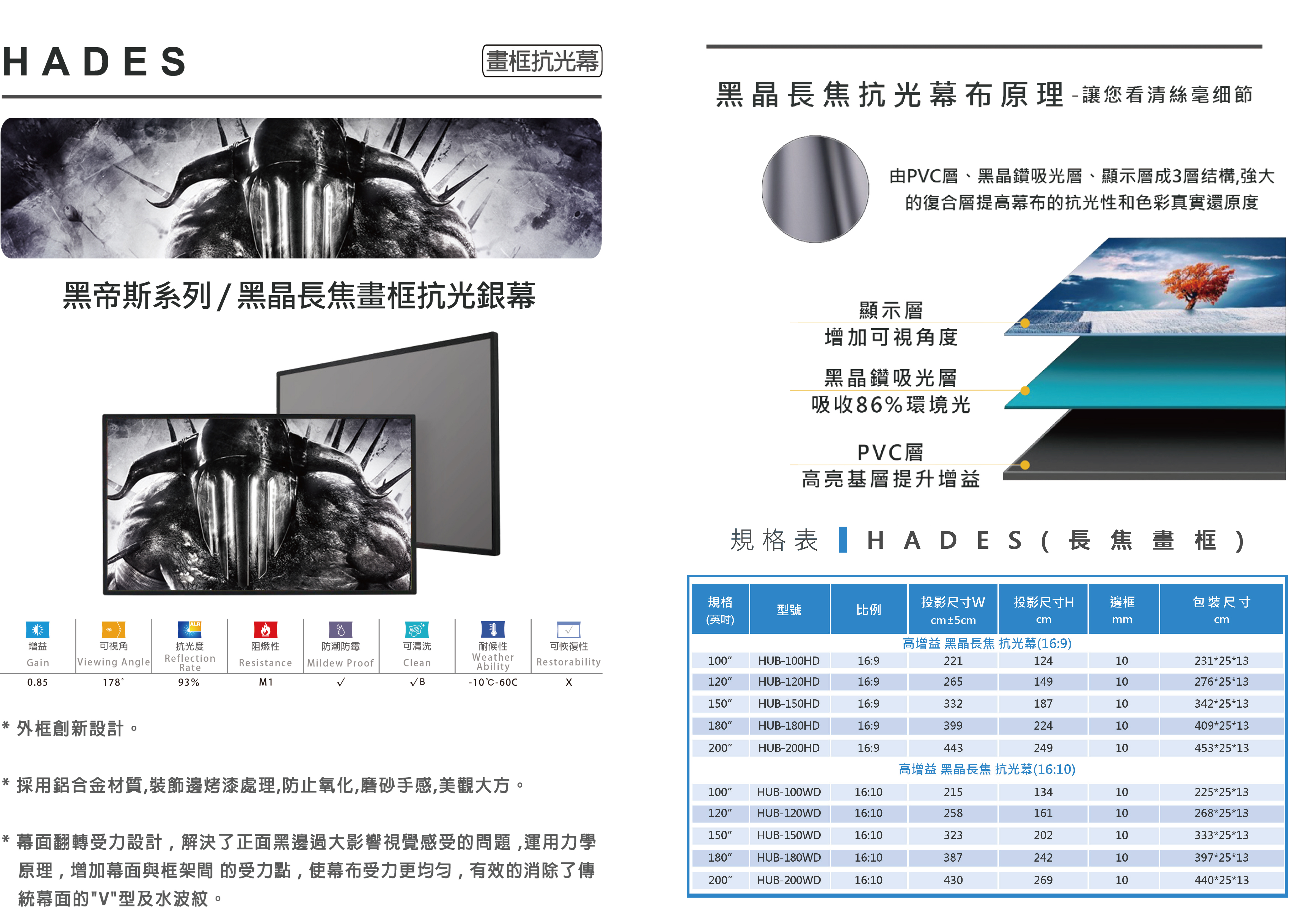 | 180” | HUB-180HD | 399 | 224 | 10 | 409 x 25 x 13 |