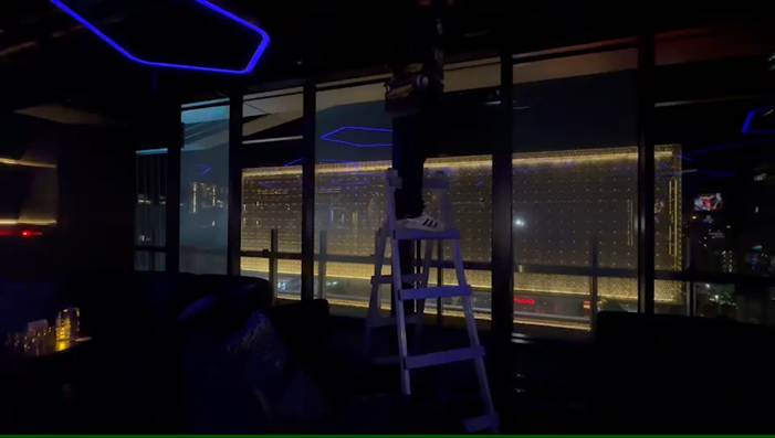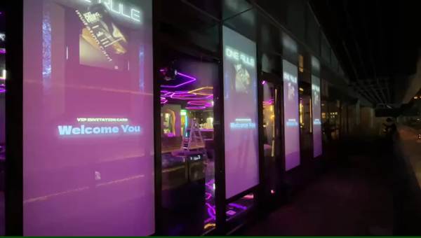 首次嘗試電控膜正投影應用,在璀璨夜景的陪襯下,讓夜店的光影層次更加迷人。